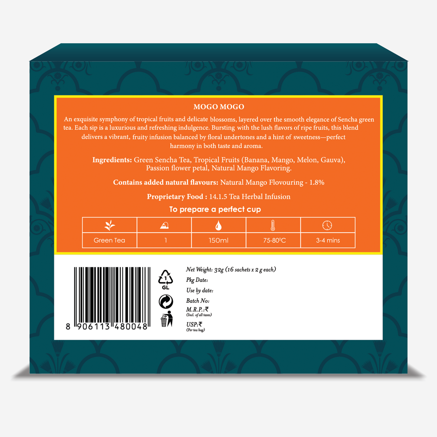 Cheery notes of bananas, mango, melons and guava hit your palate as you take in the first sip of this absolutely happy blend. Slowly you start feeling the tempo rise with rhythmic, flavourful beats from passion flower leaves, cornflowers and sunflowers. The tenor of this tea is calming and uplifting all at once. Trust us, you’ll be humming to every sip with this one!
