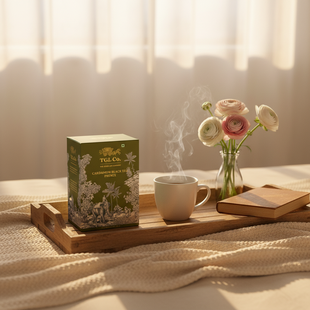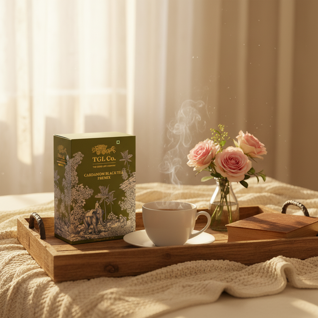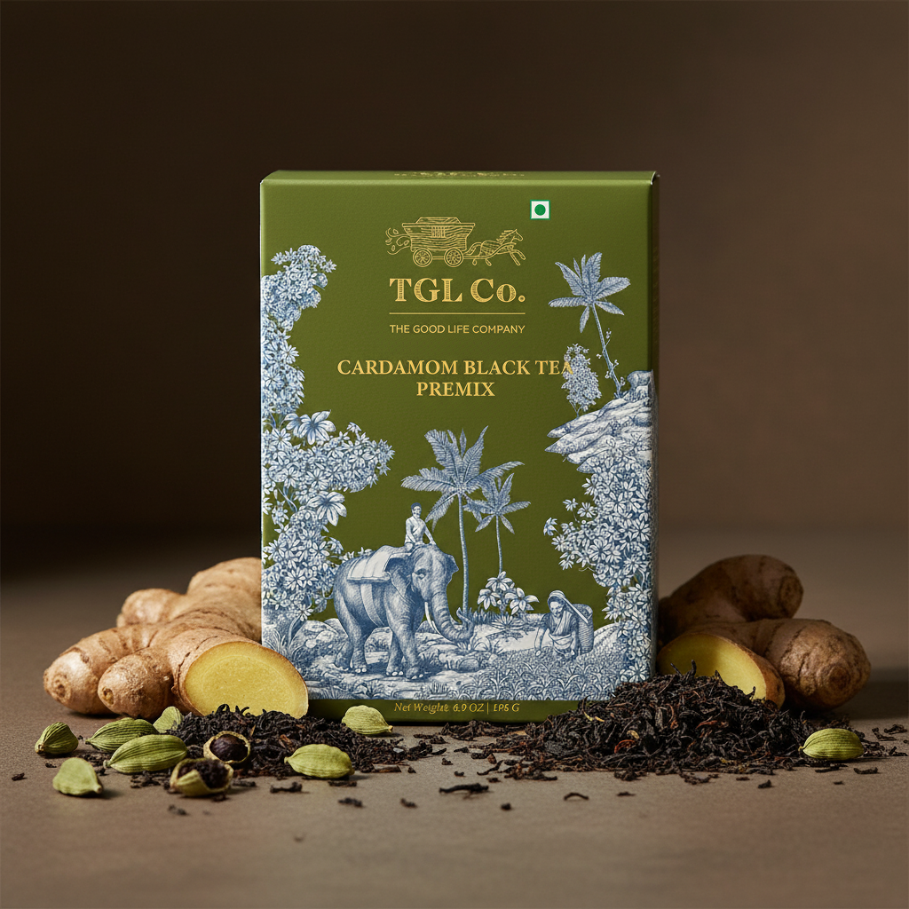 TGL Co. Instant Cardamom Black Tea Premix Sachets bring the comforting warmth of traditional Indian elaichi chai to your cup—instantly. Each 14g sachet is crafted with milk solids, black tea extracts, cardamom extract, spices, and sugar, offering a rich and aromatic cardamom flavored tea with no artificial flavors. Whether you're at home, in the office, or traveling, this instant cardamom tea premix lets you enjoy a quick brew elaichi chai in seconds. Simply add hot water and stir for a soothing, ready to drink tea experience.