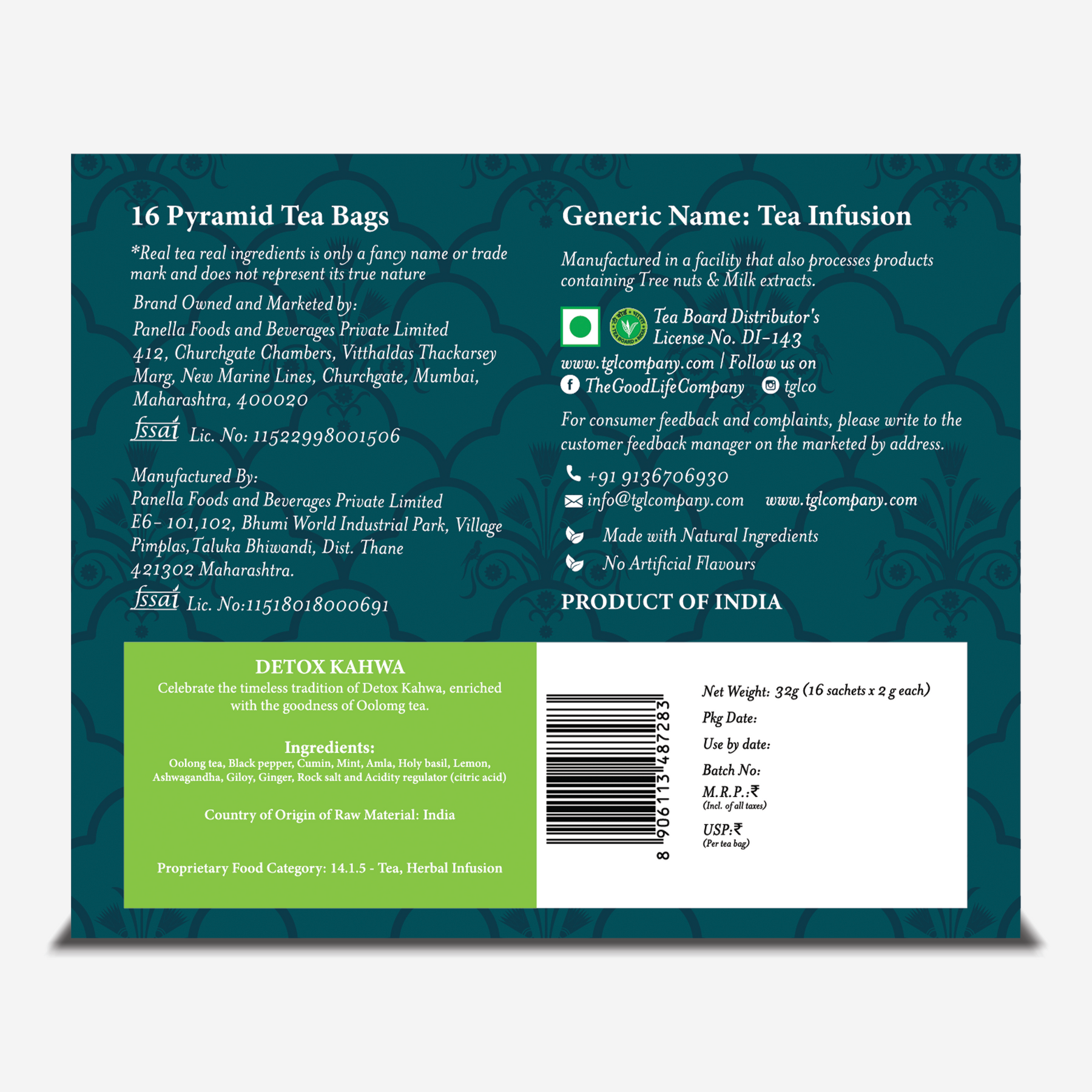 Oolong Tea, Giddha Pepper, Rock Salt, Black Pepper, Cumin, Mint, Amla, Basil, Lemon, Ashwagandha, Giloy, Ginger, Citric Acid