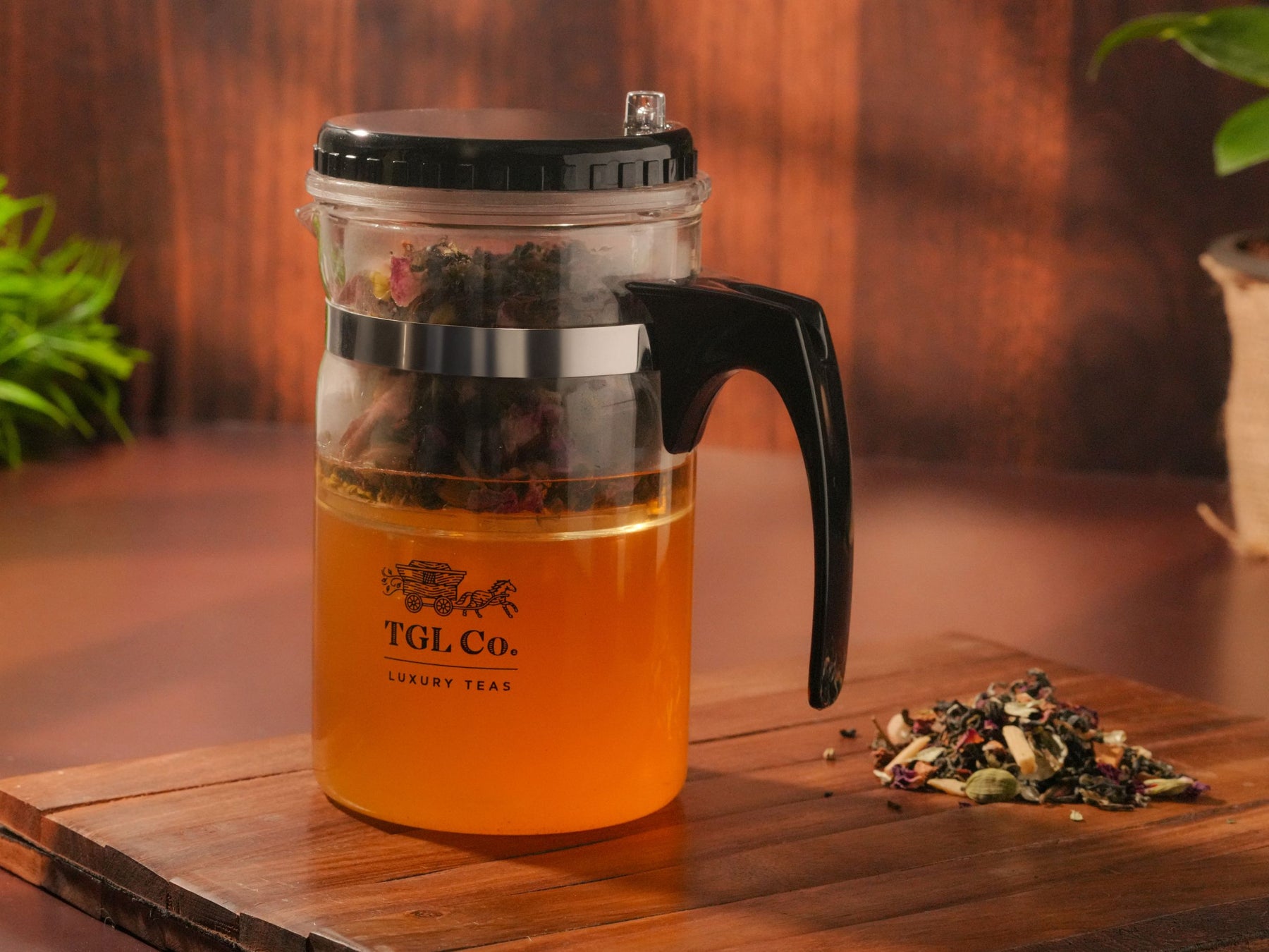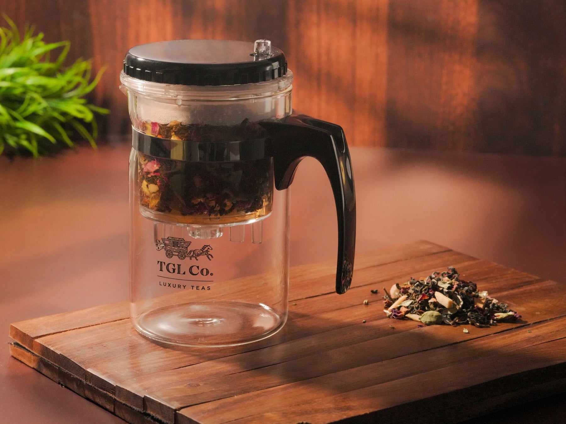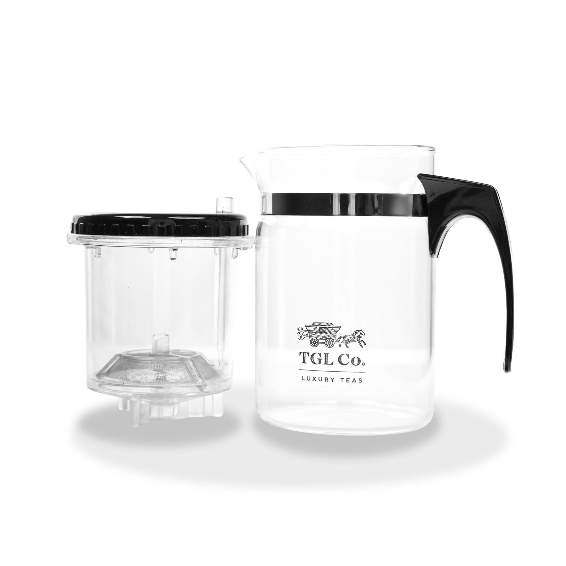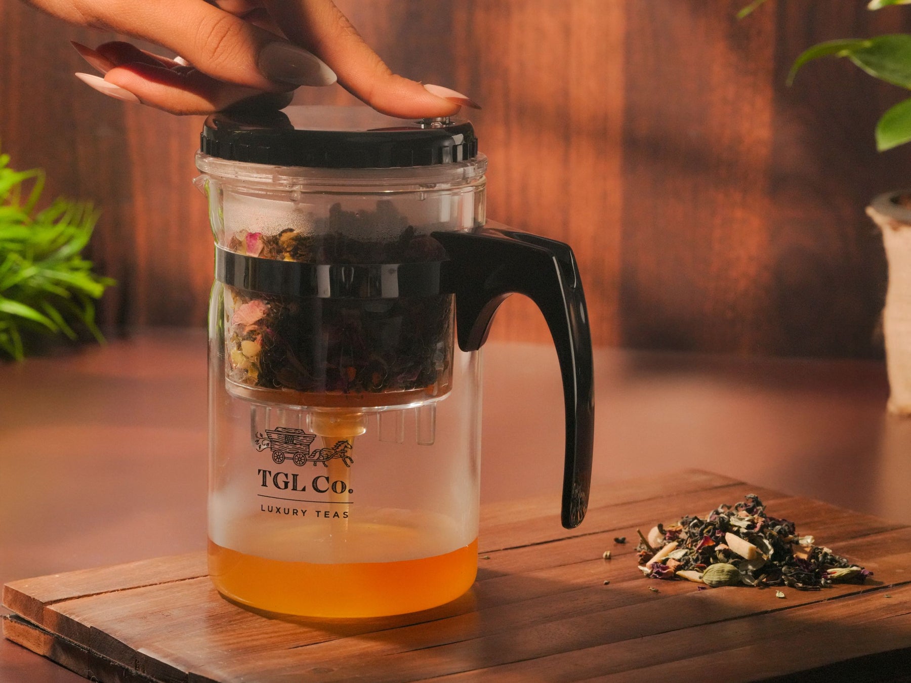 A modern, easy-pour tea brewer designed for effortless loose-leaf infusions. Its press-and-release mechanism ensures clean filtration, delivering a smooth, aromatic brew directly into your cup.